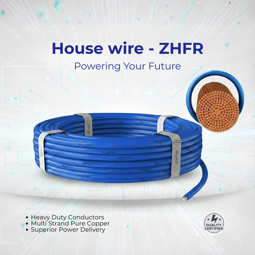 ZHFR House Wires are made with Halogen-Free Flame Retardant (HFFR) insulation that is 100% PVC-free, eco-friendly, and fire-safe. In case of fire, they emit no toxic fumes, ensuring safer evacuation. Ideal for hospitals, hotels, commercial spaces, and high-rise buildings, they deliver lasting safety, reliability, and superior quality for lifelong protection.